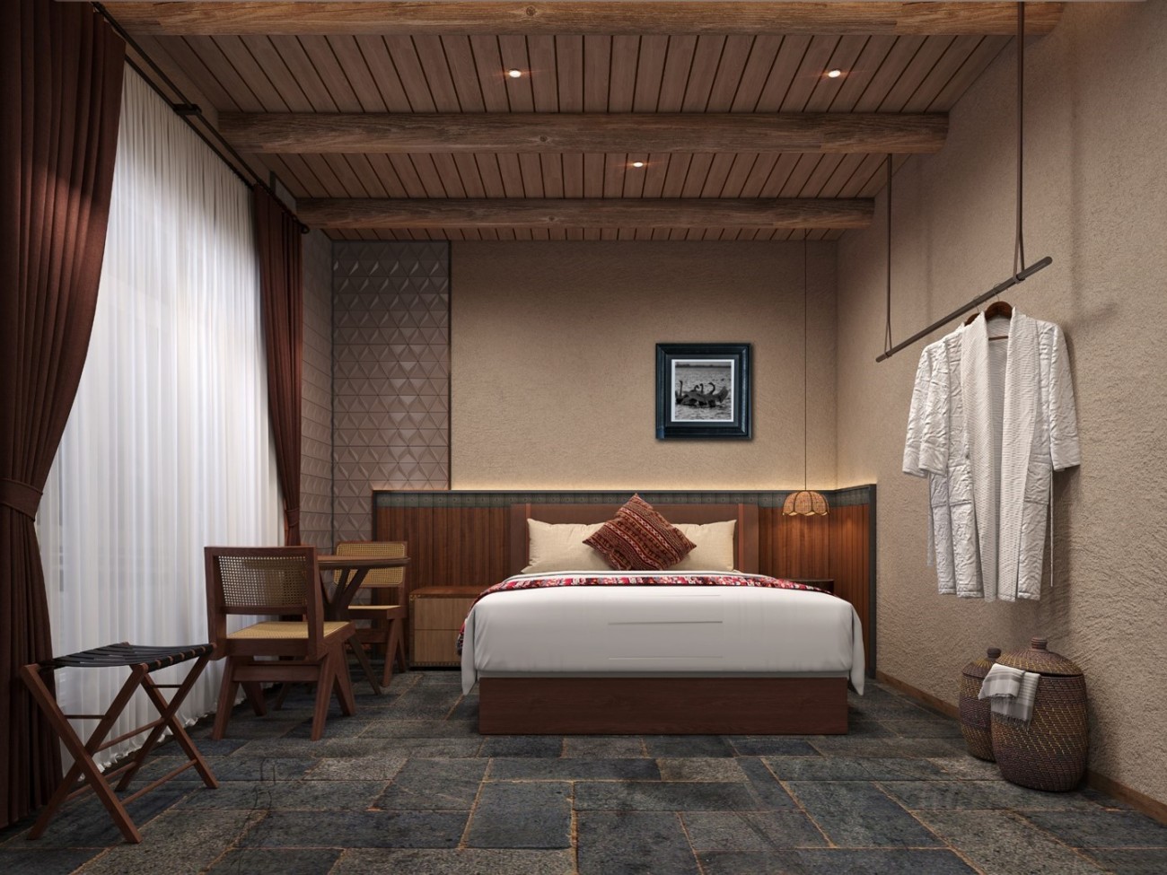 The project is located in the beautiful city of Yining, Xinjiang, surrounded by thousands of acres of secondary forests by the Swan Spring on the banks of the Ili River at the foot of the Tianshan Mountains. Local materials are used to build homes, hence the name Xiaheleketamu Village. The beautiful and pure natural environment attracts swans to winter every year, and the rime scenery is beautiful; Hundreds of households from four ethnic groups in the village are neighbors, friendly, harmonious, and mutually supportive;